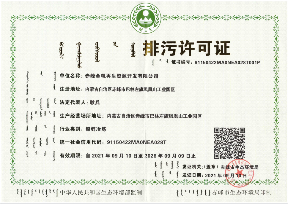 - 金帆再生資源最新危廢經營許可證 2024-04-01